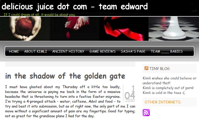 whoa, I completely missed the twilight stuff. too overwhelmed by the comic sans I suppose. ha!