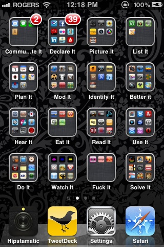 I spent a ridiculous amount of time yesterday morning reorganizing my iPhone folders into what, at the time, seemed like a perfectly logical system: