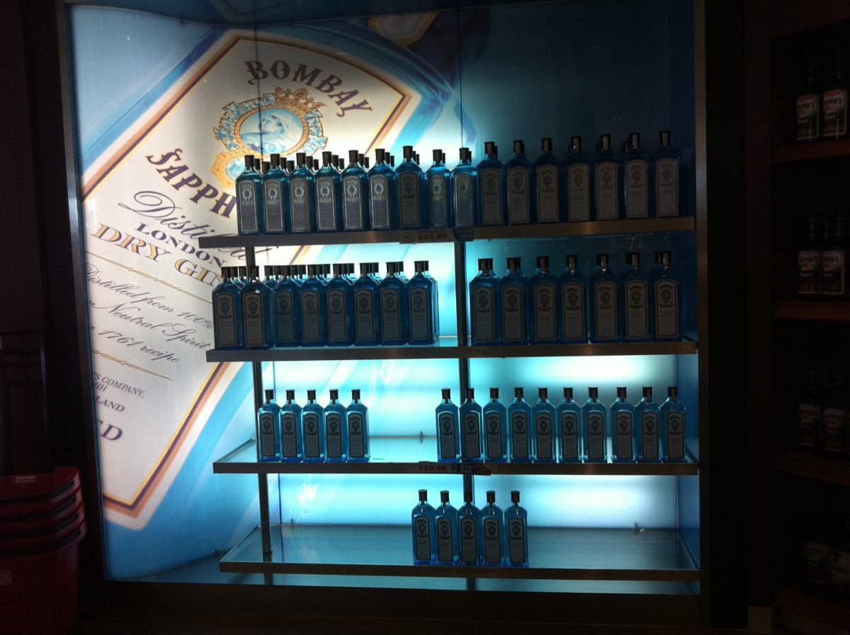 Oh, and I stopped at the Duty Free shop on my way into the US. I’d never been in the fancy new Peace Arch one, and I now know that I’ll never be in there again – I can’t AFFORD to be in there. Duty Free shops usually have a good array of stuff at lower prices, but this one was extremely high end – they had a 50% off special going on for some fancy purses, which started around $1200 (only $600 on sale!). They DID have a very (very) nice sprawling acre of booze, each with a themed wall made of glass and stone and the tears of noble children: