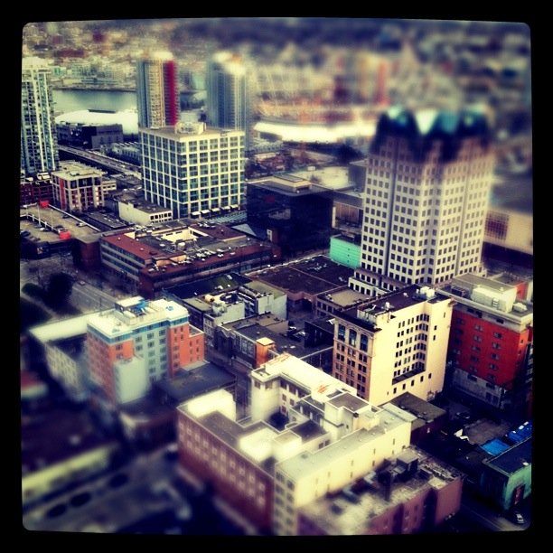 The Vancouver Twestival was last night, and while I didn’t meet as many new people as last year, I went with quality over quantity – the people I DID get to talk to are some of my favourites, both new and old. I was an official volunteer this year (unlike last year where I just decided “I’m helping now, k?”), so I was pretty busy with various tasks (mostly involving the swag bags – I am the Master of Stuffing). I did get to mingle a bit though, and take many pictures of the spectacular view. This year’s venue was the Harbour Centre Vancouver Lookout, and it was friggin’ AWESOME. I love it up there – Vancouver is a phenomenally beautiful city, and it makes my heart all tingly that I get to live here.