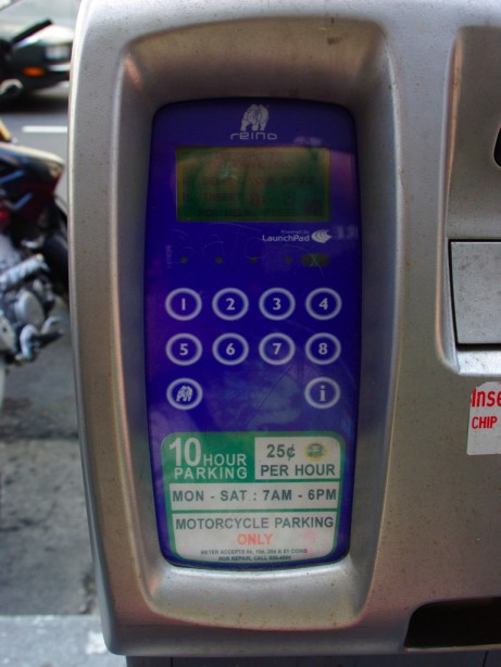 The City of Vancouver is trying to do right by those who prefer two wheels to four by creating additional parking spots for them downtown. This is great, and I approve of the initiative as well as the 50% discount on metered rates. However, the majority of the spots still seem to have either a 2-hour time limit (making them useless for people who work), or are apparently RIDICULOUSLY EXPENSIVE. I could drive my car to work, and it would only cost me $16.50 for a day – what force on this earth could ever make it a good idea to pay $18.50 for 8 hours of motorcycle parking? Let’s do some Monday morning math: