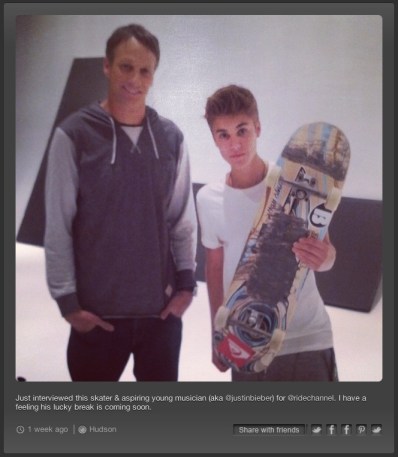 He wins the signed skateboard from Tony Hawk, which is pretty fucking awesome. Also, the skateboard has Justin Bieber’s fingerprints on it: