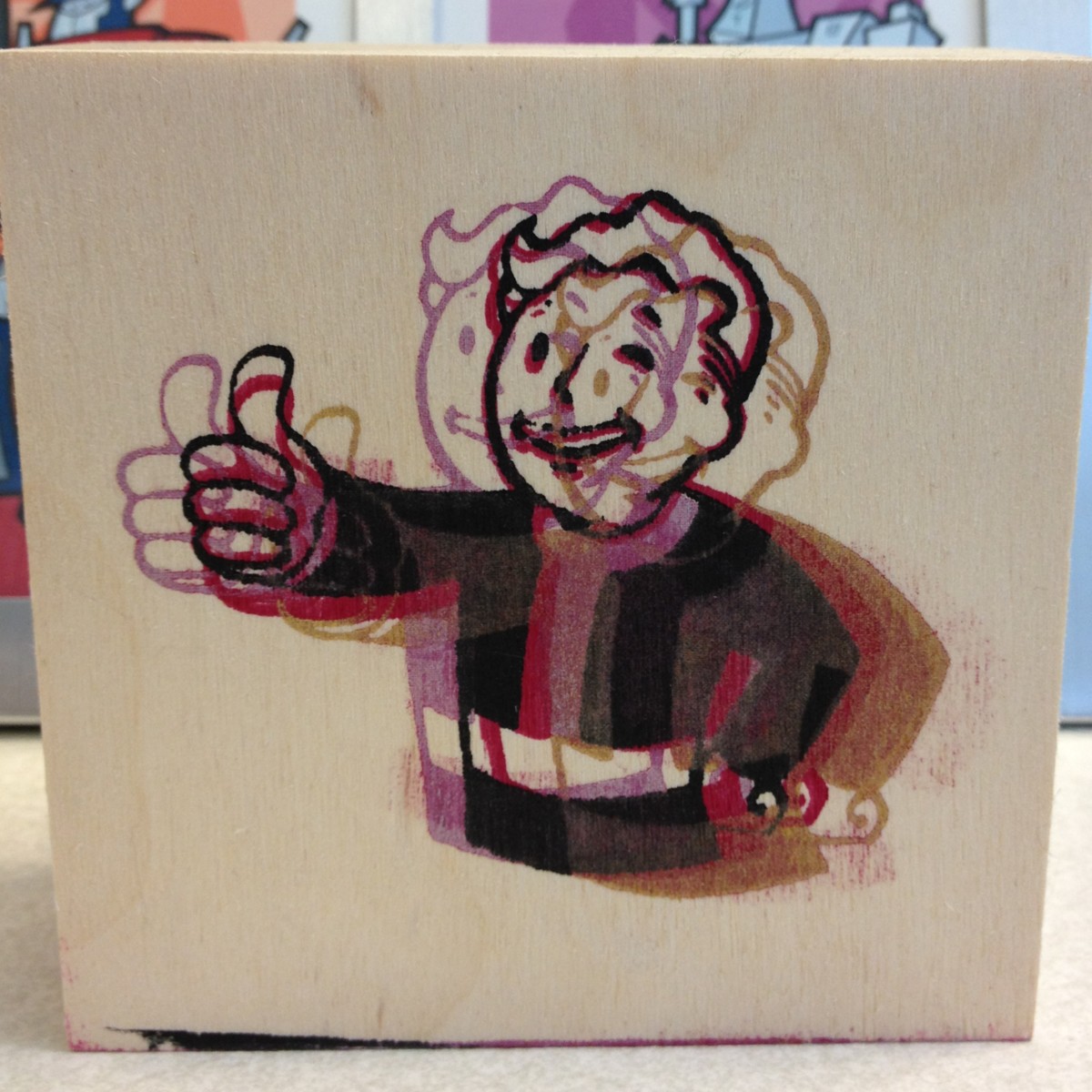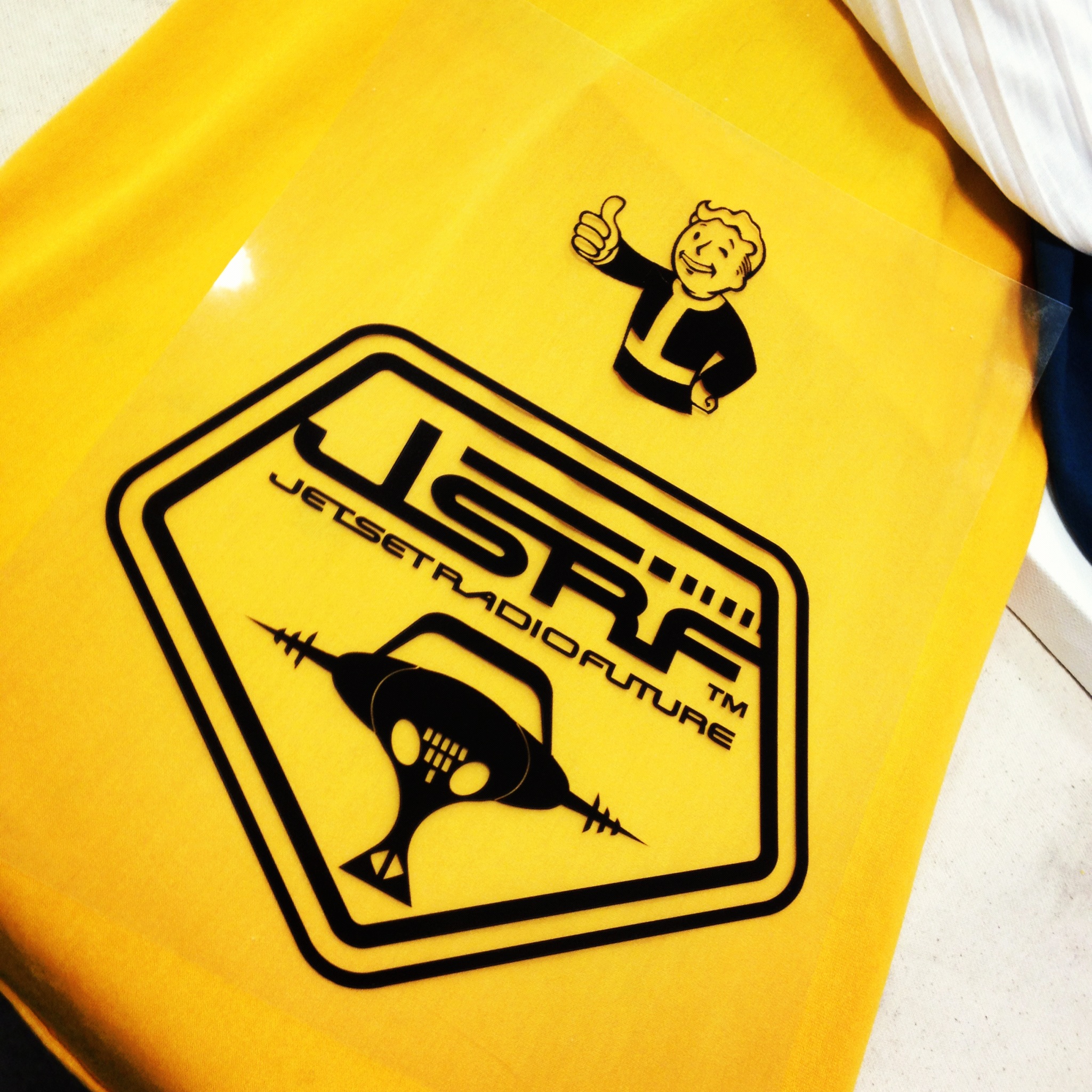 I almost ran out of time, but I did manage to screenprint Vault Boy onto a couple of things: